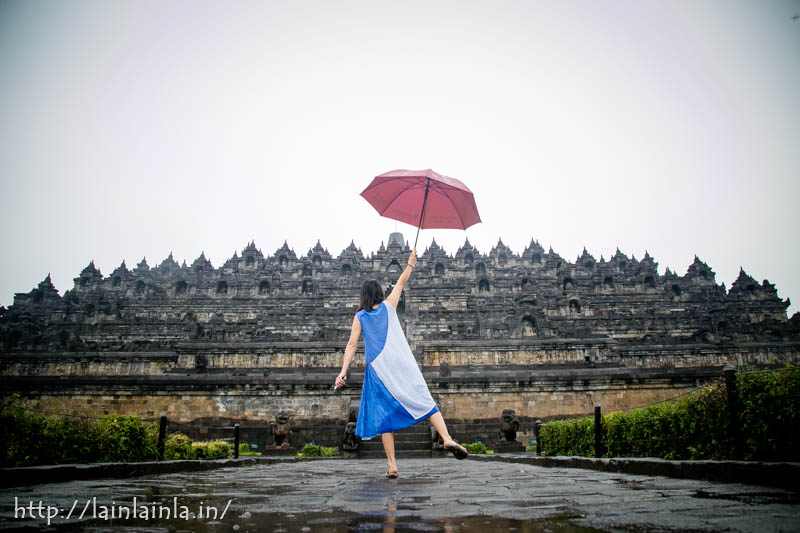 婆罗浮屠。没到酒店已被淋透,等了半下午雨还下个不停。