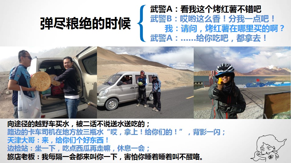 真高兴发现了这样不为所知的自己:忙乱累极时,分得清主次轻重,得以顺利成行;困境至无力前行时,如此乐观理智,解决问题继续前进;物质匮乏甚至补给即将耗尽时,心里依然充满了自由和浪漫。